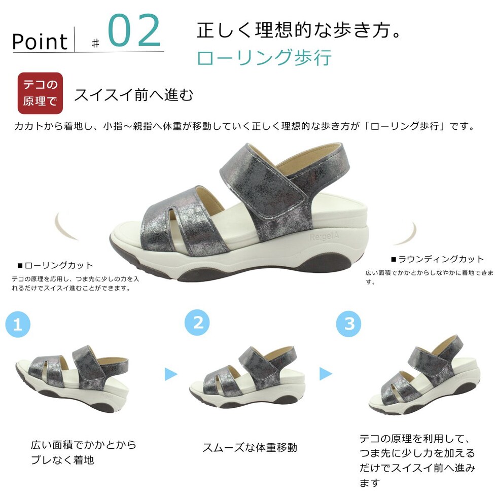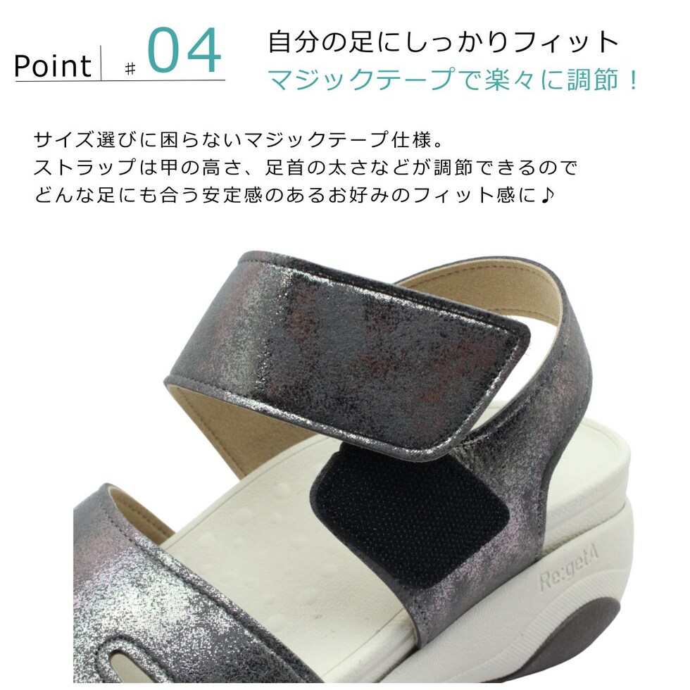 Re:getA リゲッタ レディース RE3001 サンダル 厚底 ウェッジソール マジックテープ バックバンド 靴 日本製