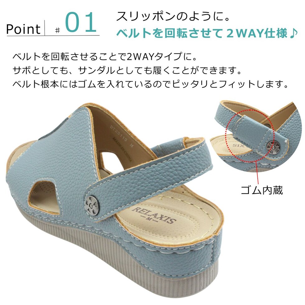 RELAXIS リラクシス レディース サンダル 2WAY 25115 軽量 幅広設計 コンフォート オールシーズン 靴 前あき バックバンド
