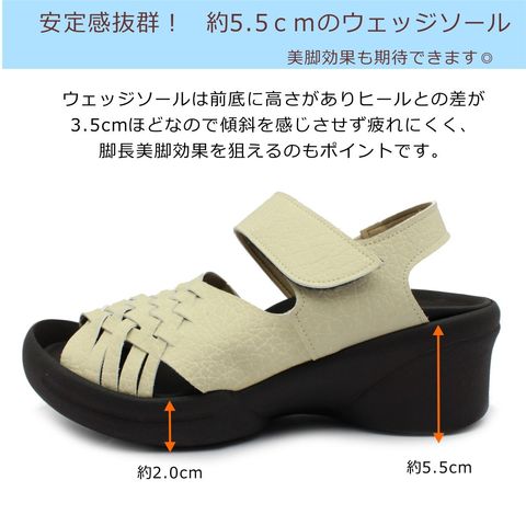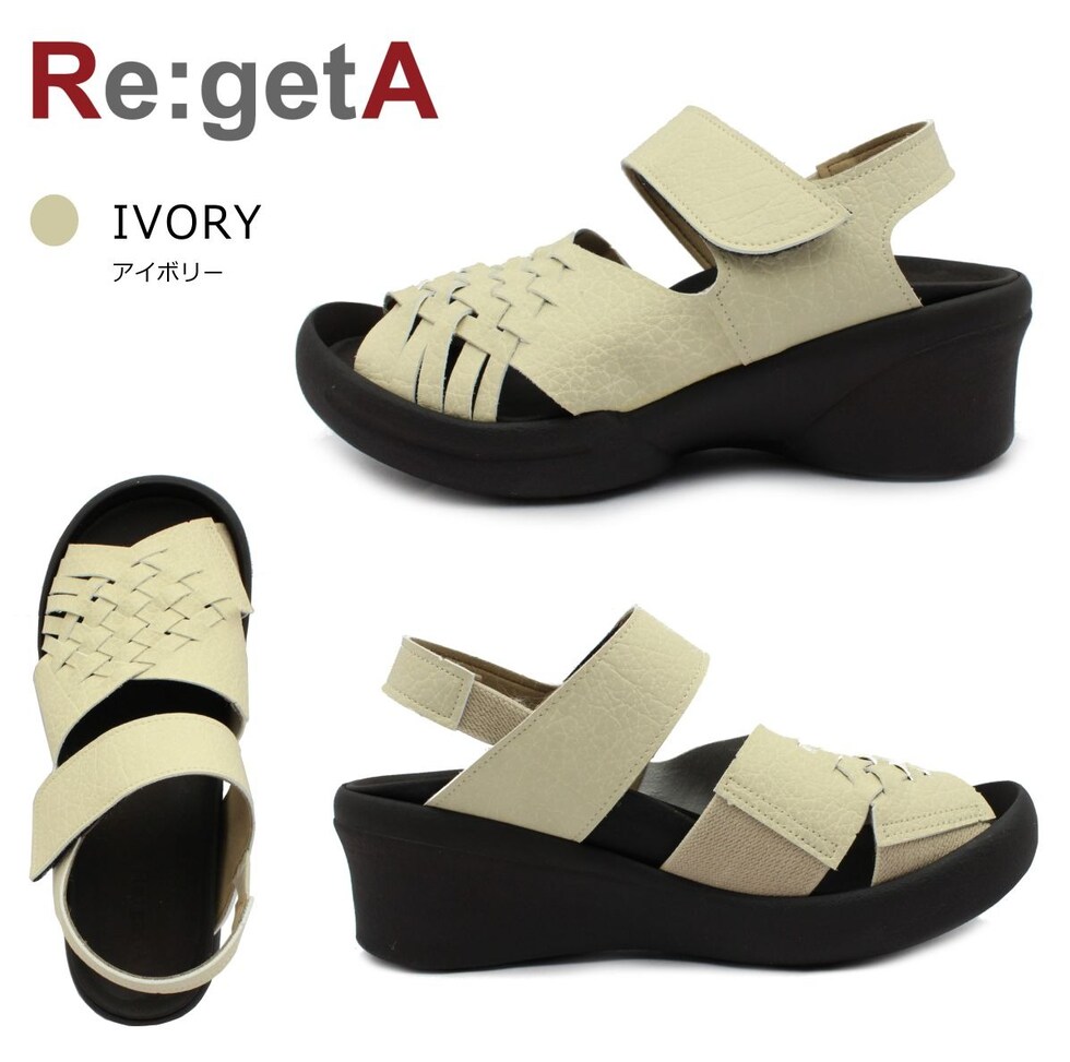 Re:getA リゲッタ レディース R2686 サンダル ウェッジソール 編み込み グミインソール マジックテープ 靴 日本製