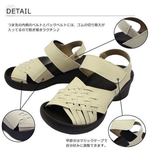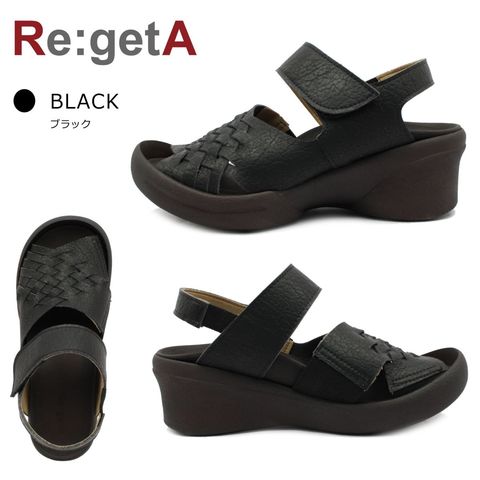 | Re:getA リゲッタ レディース R2686 サンダル ウェッジソール 編み込み グミインソール マジックテープ 靴 日本製 |