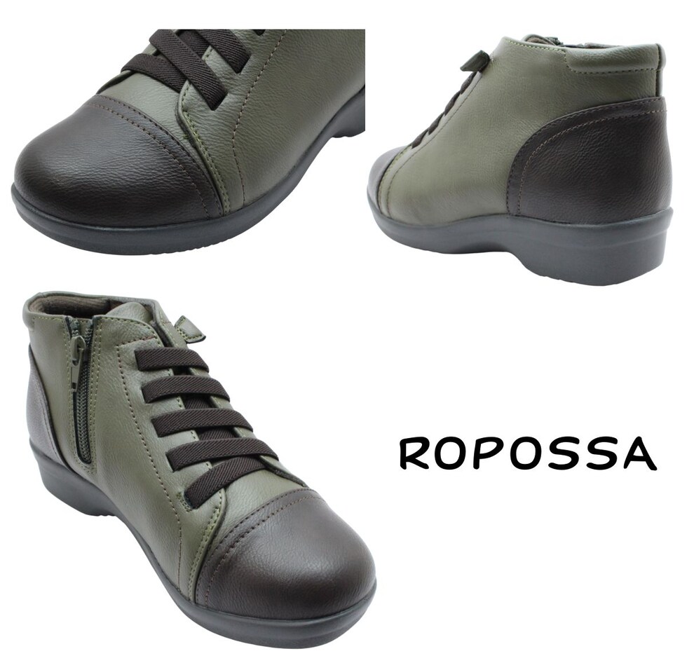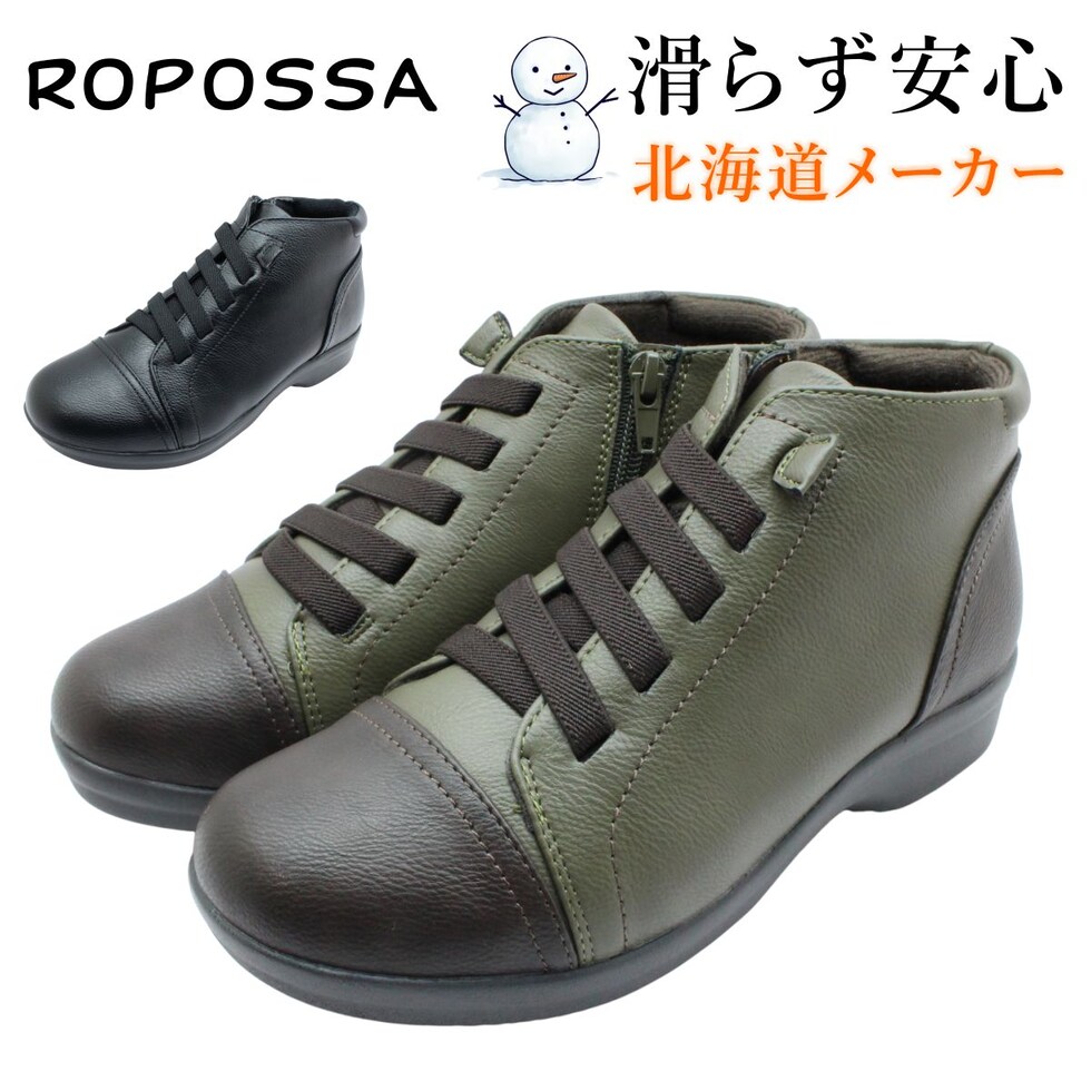 ロポッサ Ropossa スノーブーツ レディース 防水 防滑 幅広4E 2887 滑りにくい 軽量 ゴム紐 ファスナー ショートブーツ 冬靴 北海道