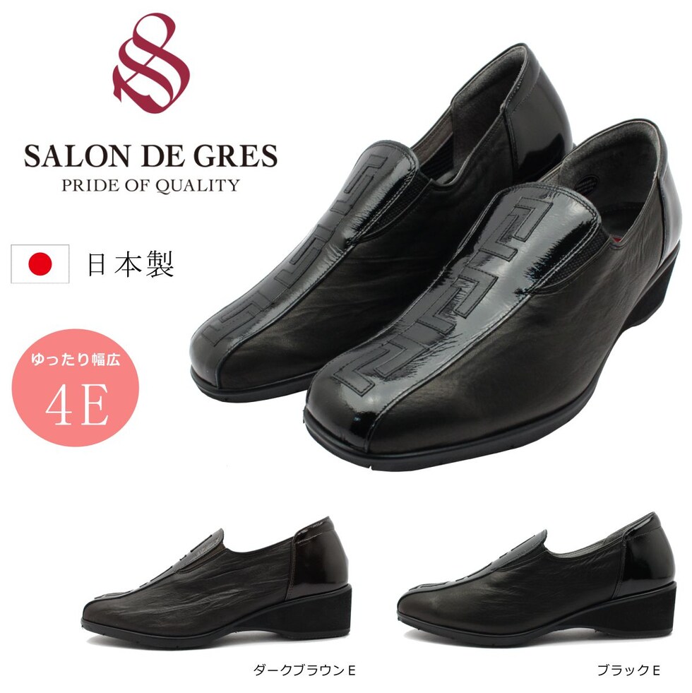| サロンドグレー SALON DE GRES コンフォート カジュアルシューズ レディース 幅広4E ウェッジソール 靴 日本製 SL18322 |