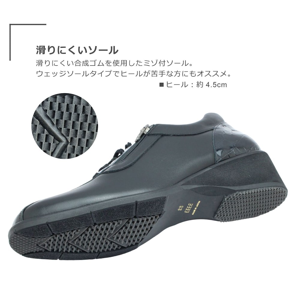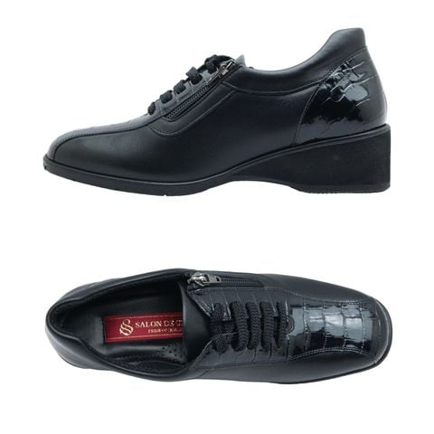 SALON DE GRES サロンドグレー レディース シューズ SL 18764 レザー シューレース ウォーキング ウェッジ 紐 歩きやすい 軽量 軽い 防滑 本革 日本製 靴 黒 ブラック
