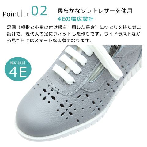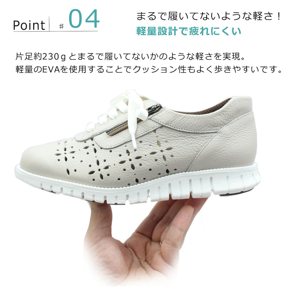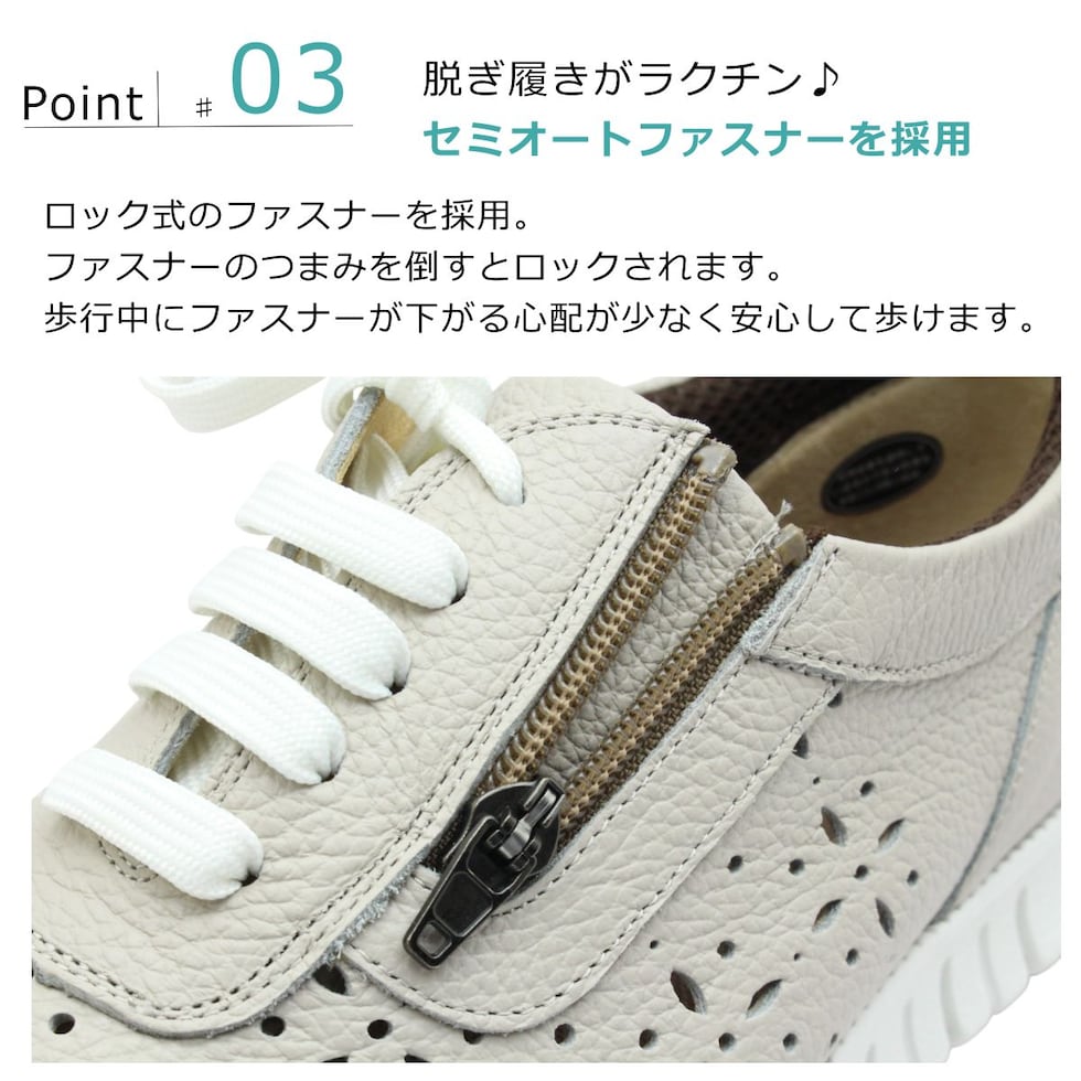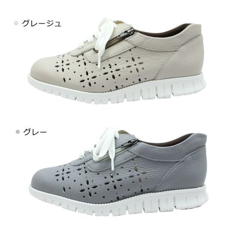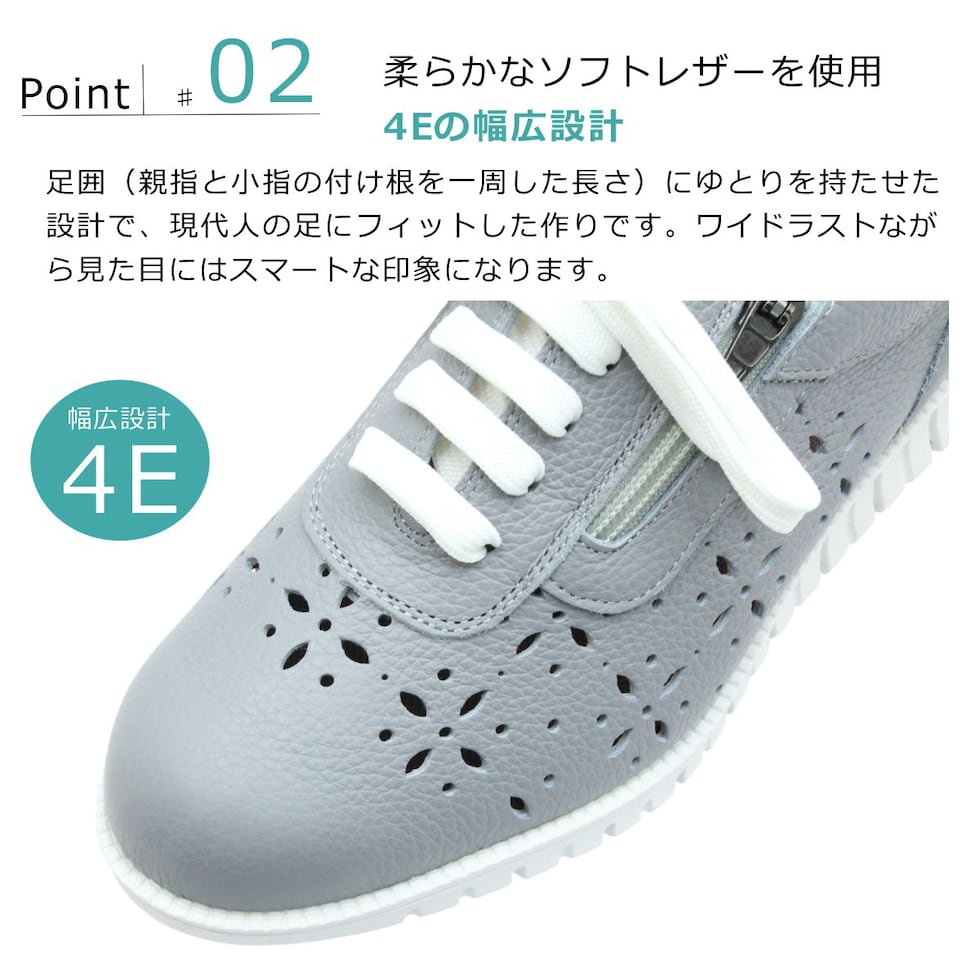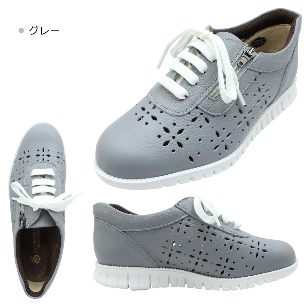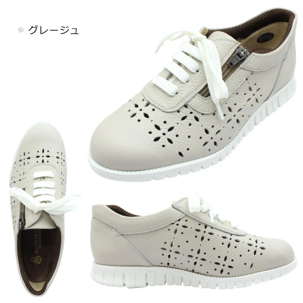 サロンドグレー SALON DE GRES レディース レザー スニーカー SL6704 幅広4E 日本製 ファスナー パンチング ウォーキングシューズ 本革 紐靴 6704