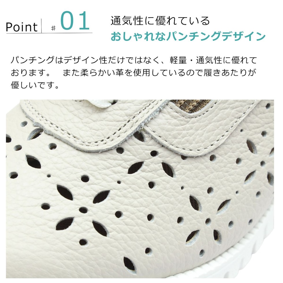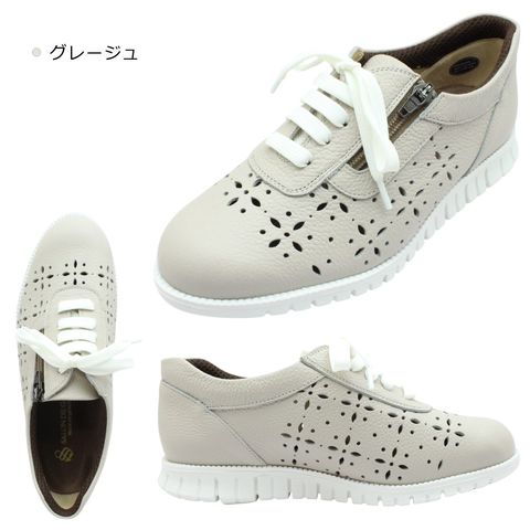 | サロンドグレー SALON DE GRES レディース レザー スニーカー SL6704 幅広4E 日本製 ファスナー パンチング ウォーキングシューズ 本革 靴 6704 |