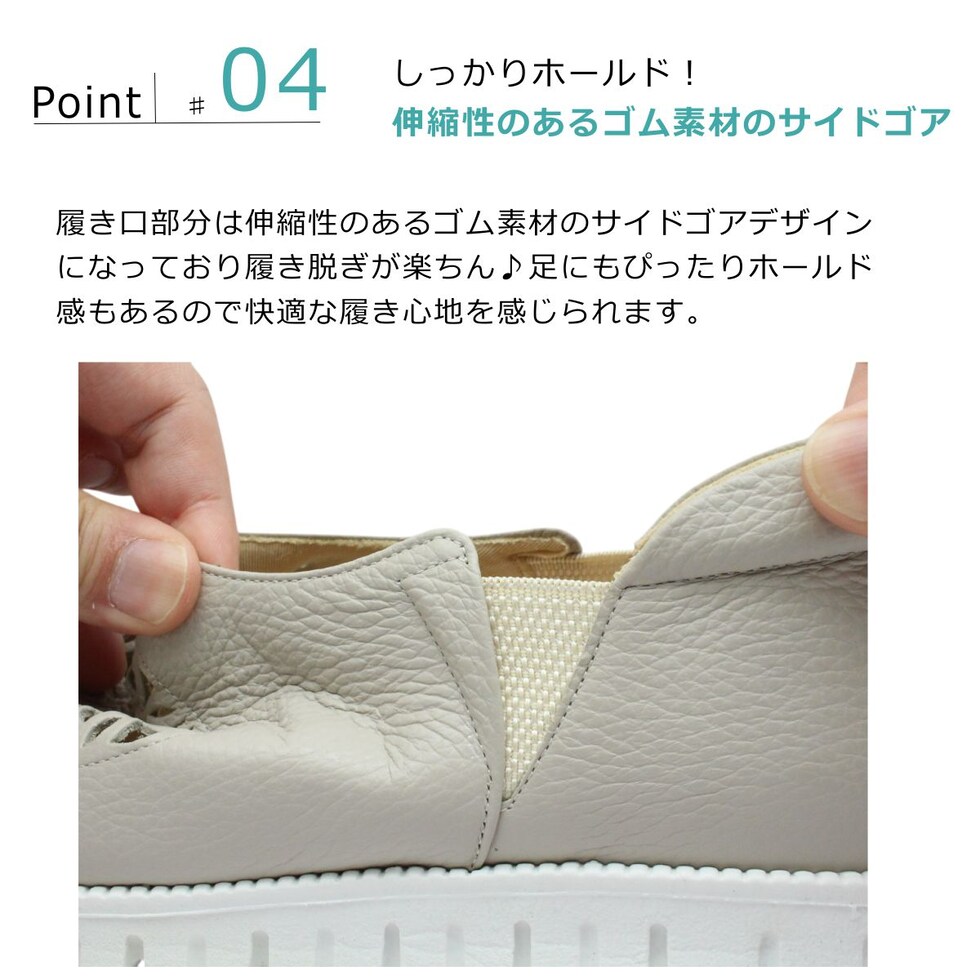 サロンドグレー SALON DE GRES レディース レザー スリッポン SL8405M 幅広4E 軽量 日本製 パンチング 本革 6704 サイドゴア カジュアルシューズ