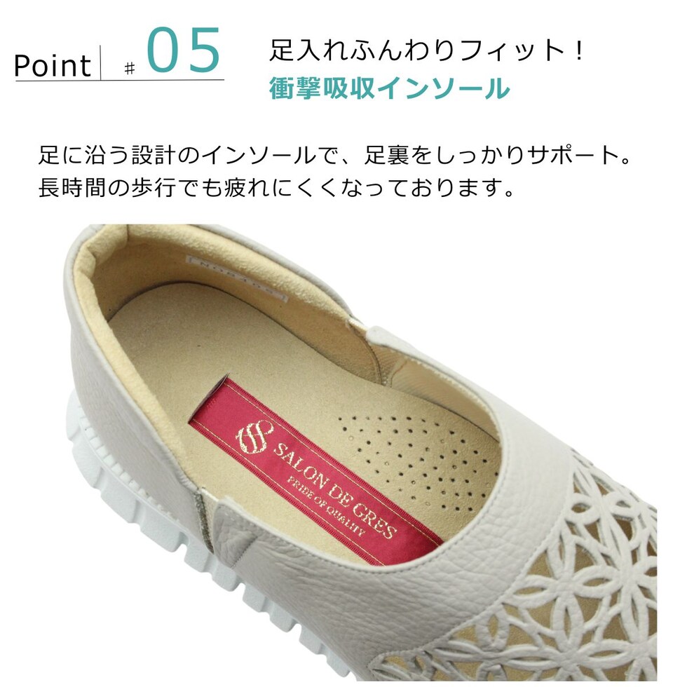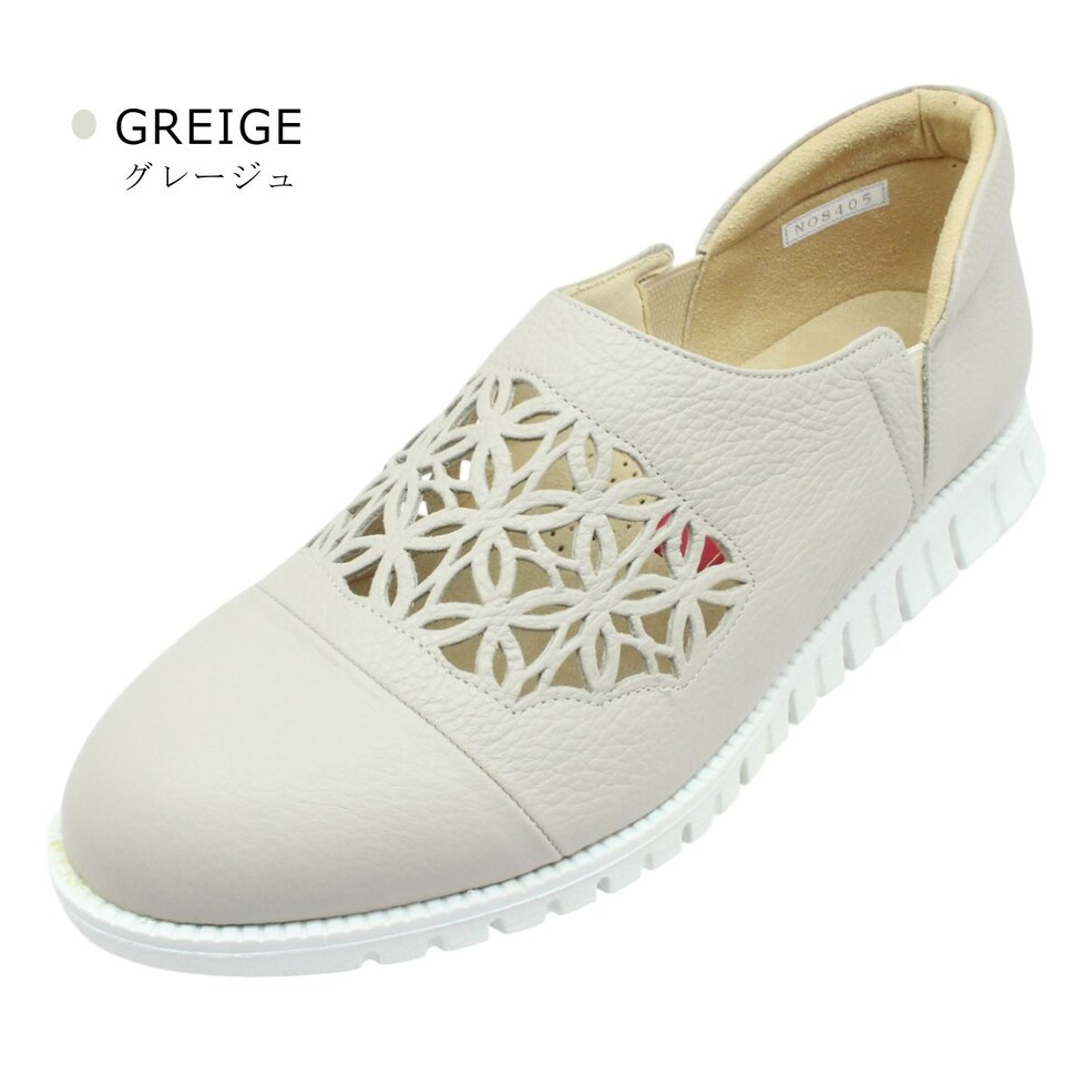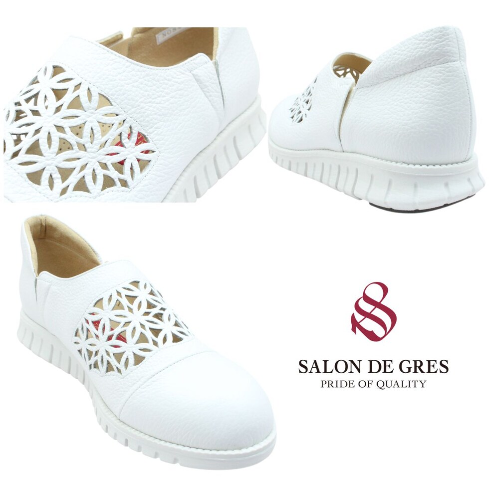 | サロンドグレー SALON DE GRES レディース レザー スリッポン SL8405M 幅広4E 軽量 日本製 パンチング 本革 6704 サイドゴア |
