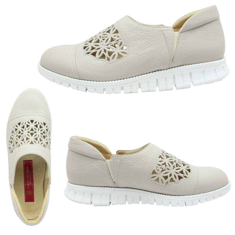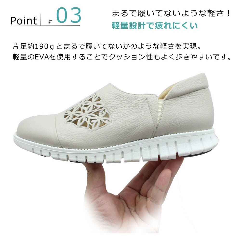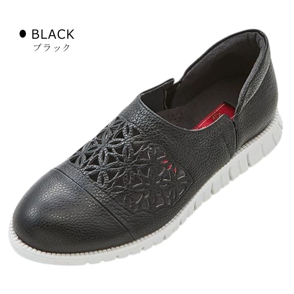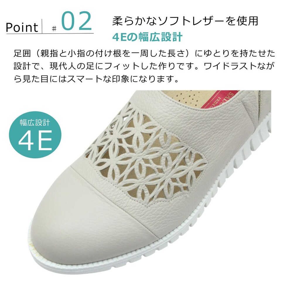 | サロンドグレー SALON DE GRES レディース レザー スリッポン SL8405M 幅広4E 軽量 日本製 パンチング 本革 6704 サイドゴア |