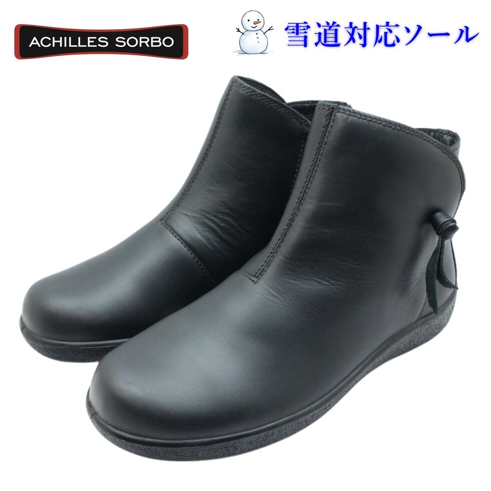 SORBO ソルボ レディース レザー スノーブーツ AWC 579 5790 幅広3E 防滑 撥水 サイドファスナー 本革 靴 ウォーキングシューズ ショート 雪道対応 Achilles アキレス ブラック