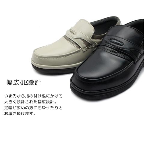 超軽量設計に加えて防滑・耐摩耗の独自開発の特殊配合素材ソールを採用。4Eの幅広設計