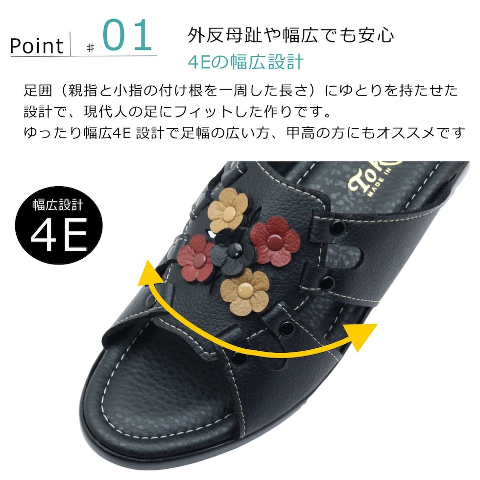 | トクエイ レディース サンダル ヘップ 504 幅広4E オープントゥ ソフトウレタン 婦人靴 日本製 徳映化学工業所 |
