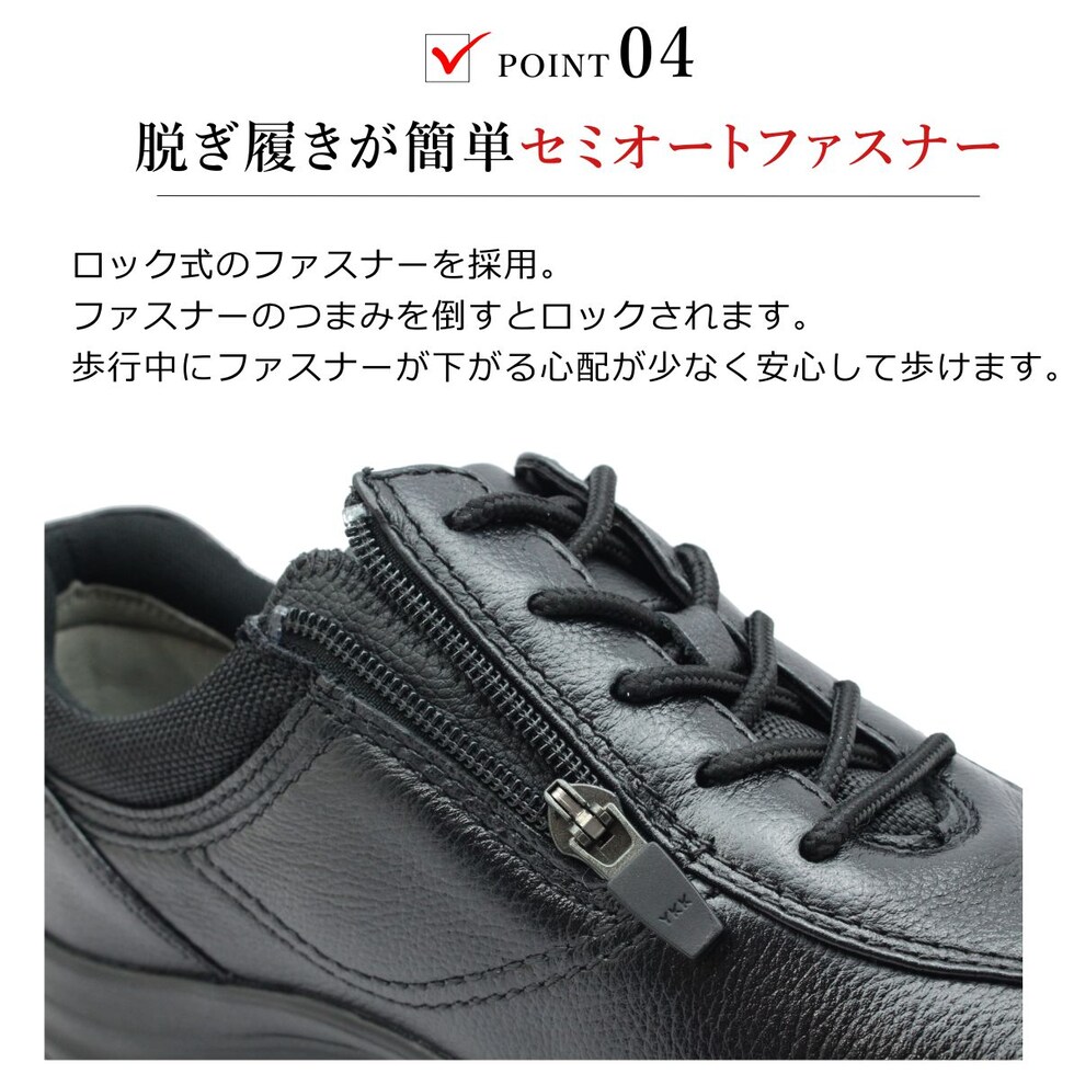 ムーンスター ワールドマーチ メンズ ウォーキングシューズ WM3118 本革 ファスナー 防水 日本製 スニーカー ビジネス moonstar WORLD MARCH