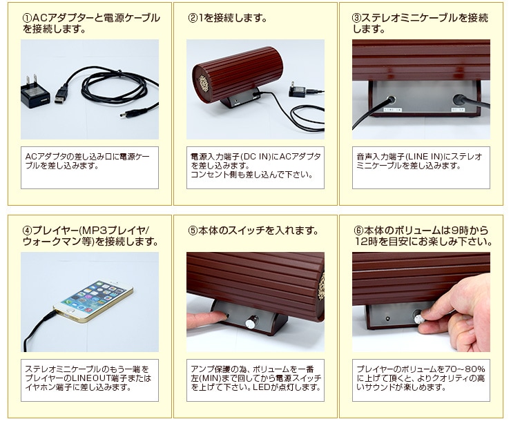 アンプが内蔵されているので、お手持ちのプレイヤーを付属のケーブルで接続するだけで簡単に豊かな音の広がりをお楽しみいただけます。