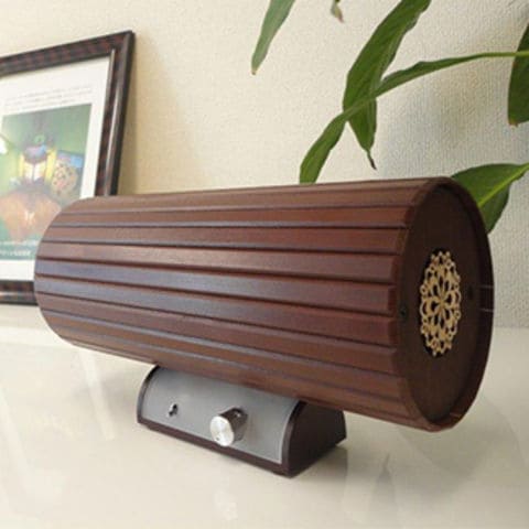 お部屋の空間にほっとぬくもりを与える、天然ヒノキを巻き上げたおしゃれなデザイン。一点一点職人の手仕上げで作りこまれています。音の広がり、立体感が自慢です。PCやスマートフォンのイヤホンジャックに付属のオーディオケーブル1本を接続するだけで、本格的なクオリティの高いサウンドをお楽しみいただけます。重さわずか860グラムのコンパクトサイズだから、お部屋からお部屋への移動もらくらく。長さ22センチの省スペース設計で、置く場所を選びません。
