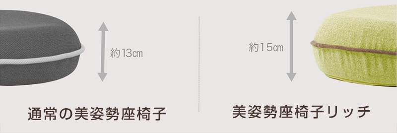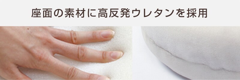 弾性の強い高反発ウレタンは適度な硬さでお尻を支えてくれ、跳ね返りの力があるので、通常のウレタンと比べ、沈みが少ないのが特徴です。身体の一部分にかかる耐圧も分散されるので、お尻・背中・腰への負担をより軽減します。座面も15cmに厚みを増して、より骨盤をしっかり支えてくれます。