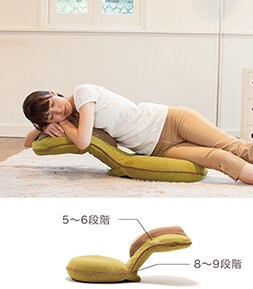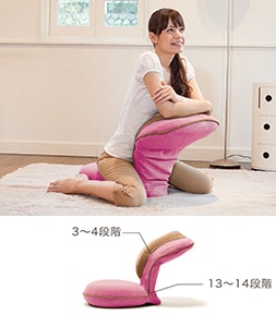 従来の座椅子とは異なり背もたれの中央部にもリクライニング機能を搭載した