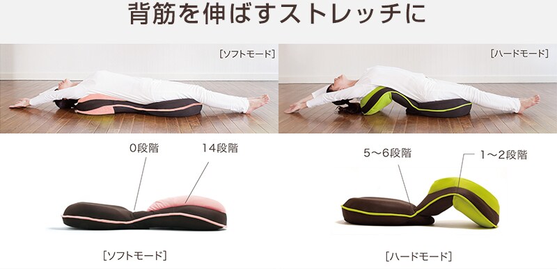 肩・背中・腰を伸ばすストレッチに。ボリュームのある背もたれが背中をグッと押してくれるので気持ちよく伸びることが出来ます。リクライニングを調節することでハードなストレッチを行うことも可能です。