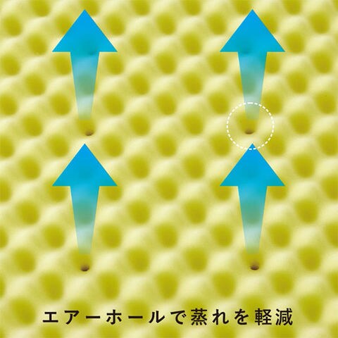 通気孔が湿気や汗を拡散・放湿し、睡眠中の不快感を軽減します。