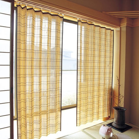 竹ヒゴを1本ずつ丁寧に磨き、横糸でつなぎ合わせた竹製のアコーディオンカーテンです。自然風を通し見た目にも涼しい。強い日差しを穏やかに遮ります。カーテンレールに掛けるだけの簡単取り付け。