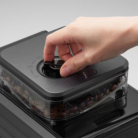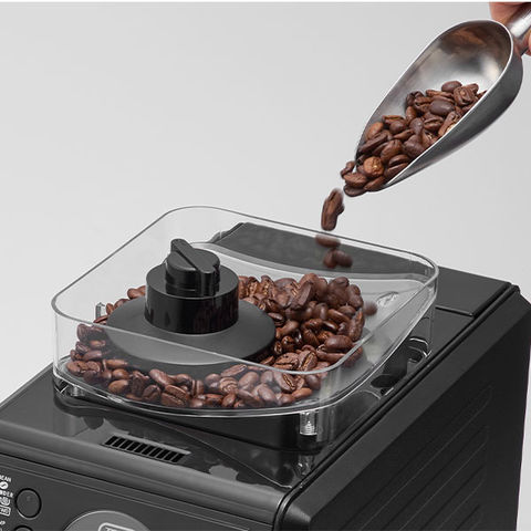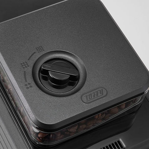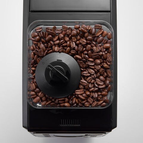 刃部分には高精度なグラインドを可能にするコーン式ミルを採用。タンクが透明なので、グラインドの様子も確認することができます。タンクには約120gまで充填が可能で、豆を計量する必要がない自動投入構造です。