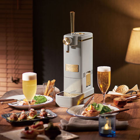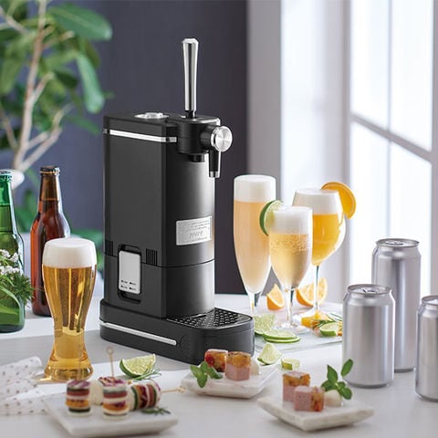 市販のビールをセットするだけで、濃厚クリーミーな泡のおいしいビールが楽しめる!コードレスかつコンパクトサイズなので、ご自宅はもちろんアウトドアシーンでも大活躍。また、2種類の飲料を1:1で混ぜ合わせる「ブレンド機能」を搭載しているので、ハーフ&ハーフやビールベースのカクテルまで手軽にお作りいただけます。