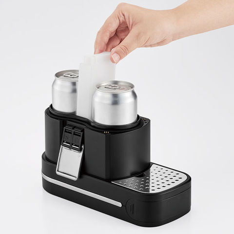 電源は、場所を選ばない単3系アルカリ乾電池×3本(別売り)の乾電池駆動。また、場所を取らないスリムでコンパクトなサイズなので、ご自宅はもちろん、バーベキューなどのアウトドアシーンでもおいしいビールが楽しめます。