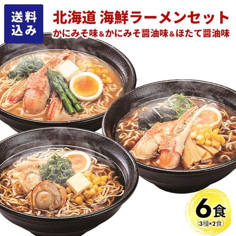 マルワ製麺 北海道産 海鮮ラーメンセット(かにみそ・かにみそ醤油・ほたて醤油)6食入 各2食計6食