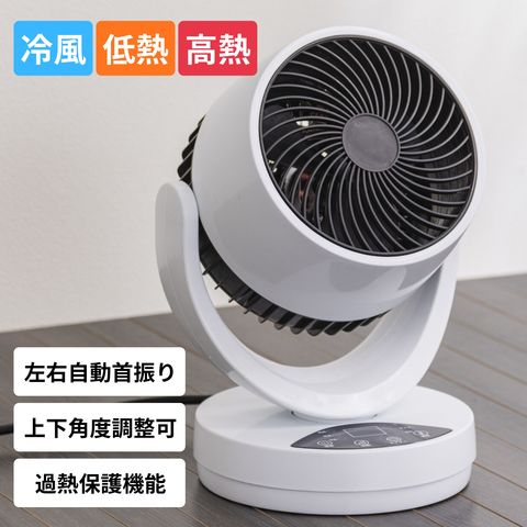 | 仕様 | 本体色:ホワイト 温冷モード:冷風・低熱・高熱 首振り角度:左右(自動)約70度、上下(手動)約45度 安全装置:過熱保護機能(内部温度が110度を超えた時に作動) |