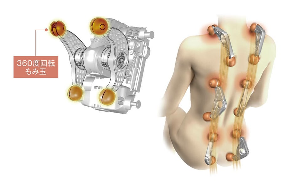 滑らかなもみ心地「360度回転もみ玉」