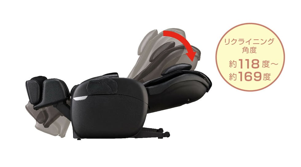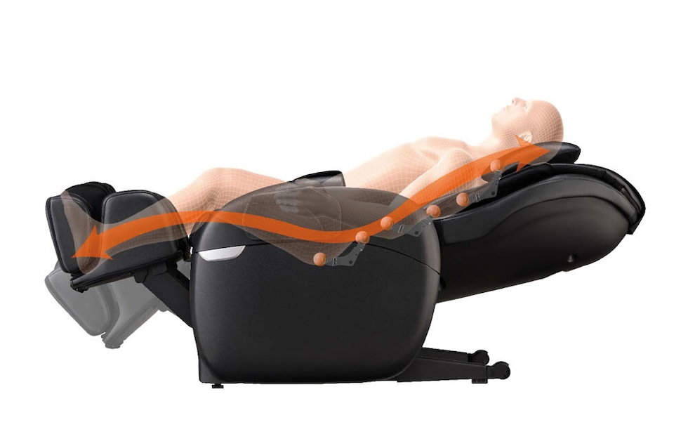 体を包み込むような寝姿勢に近いリクライニングポジションで、全身をリラックスさせながらマッサージを受けることができます。フルリクライニングでは、背もたれにしっかり体重がかかるため、マッサージの力強さや心地よさをより実感していただけます。さらに、深いリクライニング状態で行われるストレッチ動作によって、全身の筋肉が心地よく伸び、まるでプロのストレッチマッサージを受けているような爽快感をもたらします。