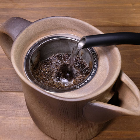 紙製のフィルターは微細な粉はカットしますが、コーヒーの旨味や油分なども吸収してしまいがち。この急須は120メッシュの微細なステンレスフィルターで漉すため、コーヒーの旨味や風味がダイレクトに楽しめます。また、常滑焼は釉薬を使わない焼締のため、表面に無数の微細な穴が開いており、コーヒーの渋みや苦みを適度に吸収してくれるので、何杯も飲める軽やかな味わいになります。