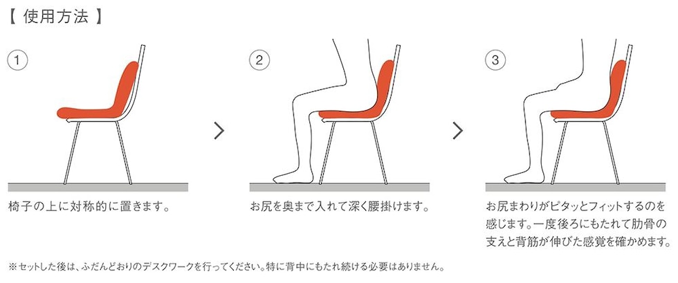 | 注意事項 | ・上下を逆さにしないでください。・必ず椅子の上に置いてご使用ください。単体での使用はしないでください。・カバーからウレタンを取り出す際は、ウレタンの破損にご注意ください。 |