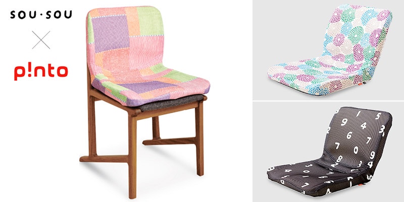 「新しい日本文化の創造」をコンセプトにオリジナルテキスタイルを作成し、地下足袋や和服、家具等を製作、販売する京都のブランド「SOU・SOU(そうそう)」と、「p!nto(ピント)」がコラボレート。ポップなテキスタイルのピントが誕生しました。