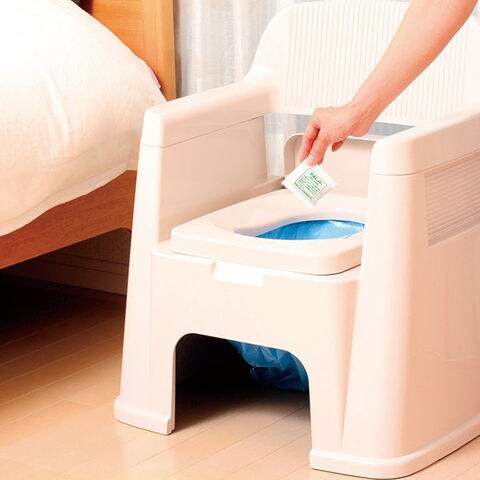 災害時の断水でトイレが流せない時や、介護用トイレの後始末、アウトドアやドライブ途中でトイレが近くにない場合の必需品、汚物の凝固脱臭剤「セルレット」。