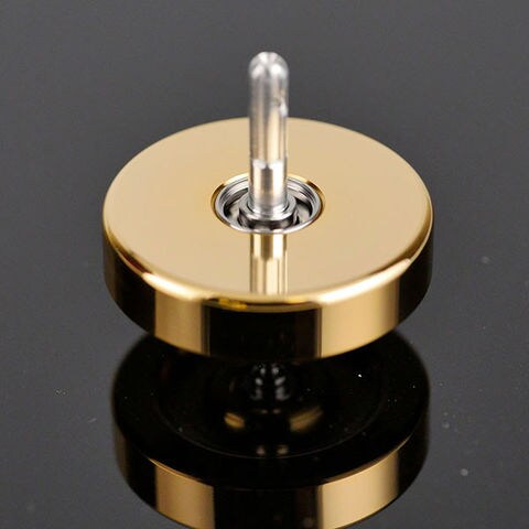 軸が独立して回ることで、指の上など摩擦のある面でも簡単に長く回せるようになりました。軸が独立して回ることで、実は通常の独楽より回転の持続性やバランスは失われています。みそすり運動と呼ばれる独楽が起き上がろうとする力が全て抜けていくため、一度回転が斜めになるとそのままずっとゆらゆらと回り出します。