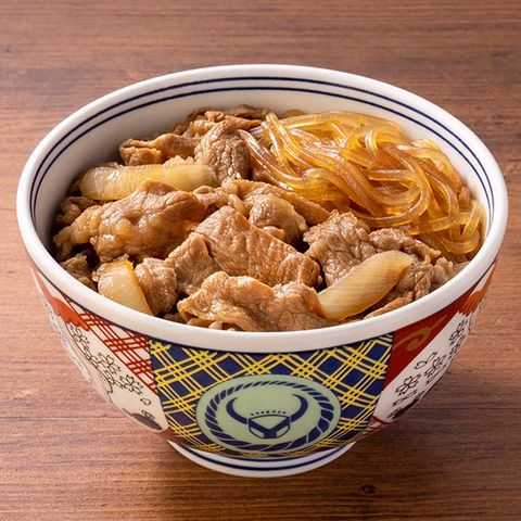 牛バラ肉・玉ねぎ・春雨(マロニー)を具材にすっきりした甘さのタレで仕上げています。ご飯にかけて“丼”にした際、最後の一口まで美味しい、飽きのこない味に設計。吉野家の窮地を救った味わいは健在です。