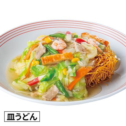 明るいキツネ色に揚げた麺にたっぷりの野菜あんをかけると、初めはサクサクの食感で、あんが馴染んでくると柔らかい口当たりに変化します。皿うどんならではのおいしさをお楽しみください。