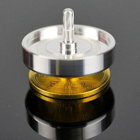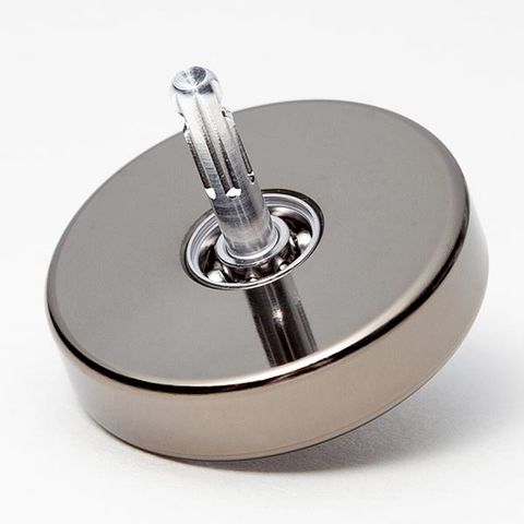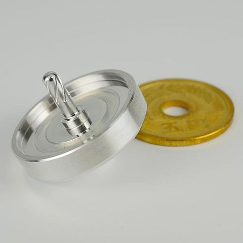 軸が独立して回ることで、指の上など摩擦のある面でも簡単に長く回せるようになりました。軸が独立して回ることで、実は通常の独楽より回転の持続性やバランスは失われています。みそすり運動と呼ばれる独楽が起き上がろうとする力が全て抜けていくため、一度回転が斜めになるとそのままずっとゆらゆらと回り出します。