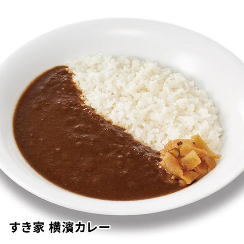 「すき家」の商品は、定番の牛丼の具、牛カルビを特製甘だれで味付けした牛カルビ丼の具、野菜の旨みが溶け込んだ欧風カレーの横濱カレーの3種類。