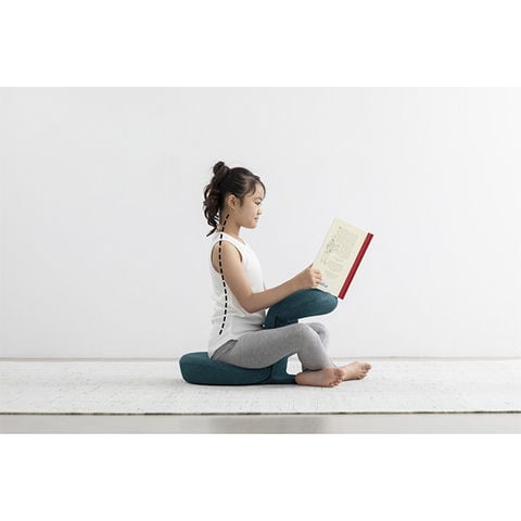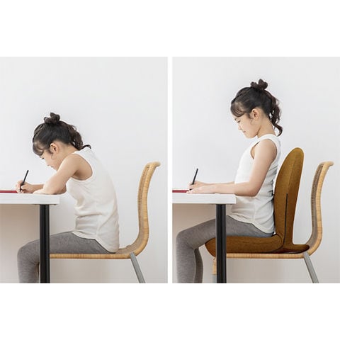 背筋の理想的な弯曲に沿うクッション形状で、通常の座り方だと背筋をサポート、抱っこ座りの時は横隔膜をサポートし、美姿勢へ導きます。