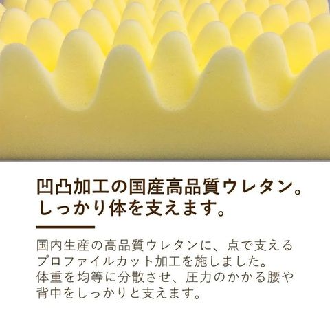 凹凸加工の国産高品質ウレタンがしっかり体を支える