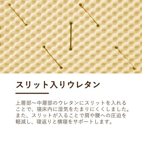 上層部~中層部のウレタンにスリットを入れることで、寝床内に湿気を溜まりにくくしました。