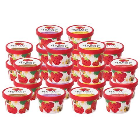 | 内容量 | あまおうソース&バニラ58ml・あまおう&ショコラ76ml×各5、あまおうクリームチーズ・あまおうシャーベット各78ml×各7(計24) |