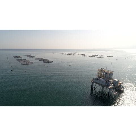 まずは雄大な名水で知られる「大山」から湧き出る伏流水などで淡水育成をし、250g前後までに成長後は海洋養殖場の「美保湾」で育成します。流れの速い潮流、冬の日本海の荒波にもまれ、さらに成長します。