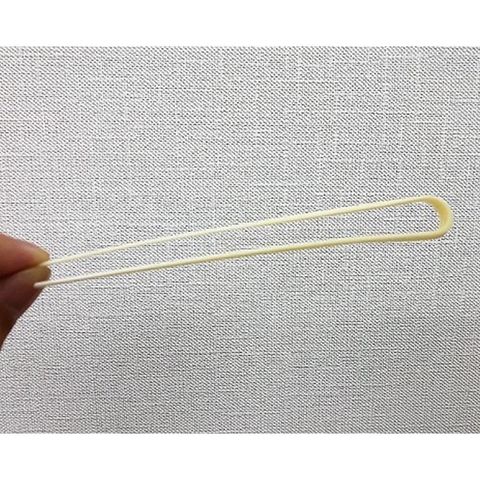稲庭うどんは長さ約2メートルの麺を決められた寸法に切り揃えます。そのときにどうしても棒に吊っていた曲線部分「バチ(かんざし)」が必ず発生してしまいます。そのバチ部分は長さや太さが不揃いのため、製品として使うことができません。その部分を集めてお徳用としてご提供しています。