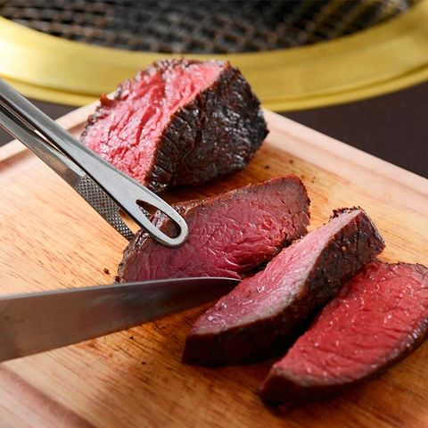 肉汁をしっかり閉じ込めて旨味を逃さない。「門崎熟成肉」の一番の醍醐味は「塊肉」の「塊焼き」でこそ味わえます。この塊焼きという焼き方は、焼肉やステーキ等の焼き方で焼いた場合と違い、お肉を塊の状態で焼くため、 肉汁をお肉の中心部に閉じ込めることができ、旨みを逃さずに焼き上げることが出来ます。