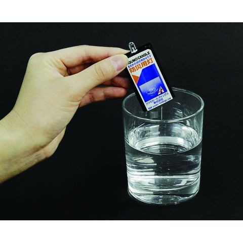 マグネシウムの化学反応を利用。約1ccの水に底面を浸すだけですぐにLEDが点灯します。光が弱くなったら再度水につけると明るさが復活。徐々に光量は落ちますが、約168時間点灯し続けます。