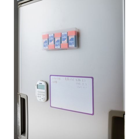 5個1組のケース入り。他の防災グッズと一緒に置いてもスペースをとられず、ケースの背面はマグネット付きで冷蔵庫などに貼っておけます。