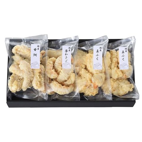 | セット内容 | 真ふく天ぷら125g×2、甘鯛天ぷら・夢かさご天ぷら 各125g×1 |