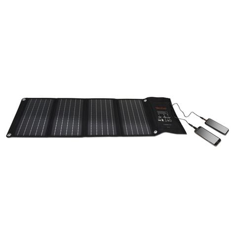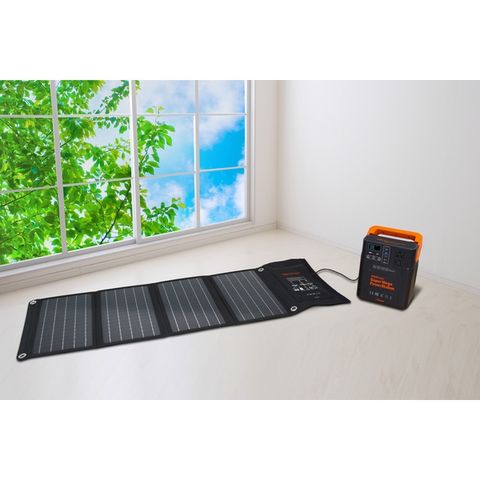 大容量で持ち運べる充電池とソーラーパネルのセット